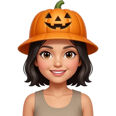 cute cambodian woman in sleveless wearing a pumpkin hat emoji