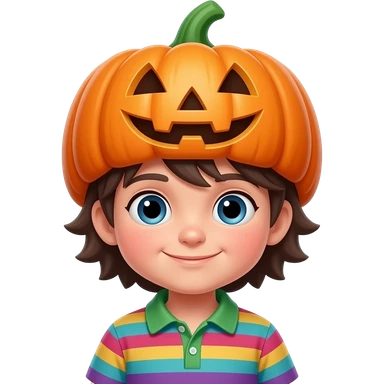 kid in colourful cloths wearing a pumpkin hat emoji