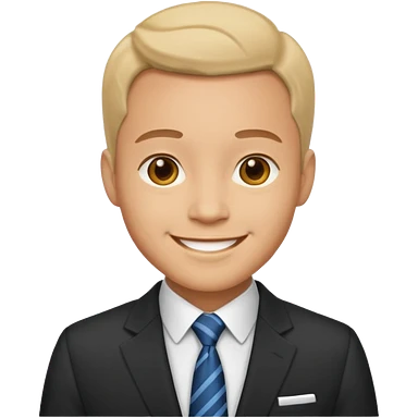 Man wearing black glasses, short white hair, blue suit, white shirt, no tie emoji