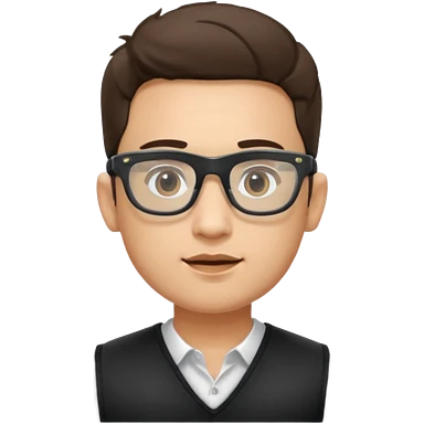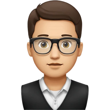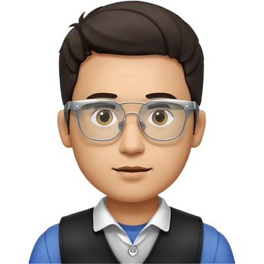 Man from the shoulder up, facing the audience. Wearing a black vest and AR glasses that look like google glasses. emoji