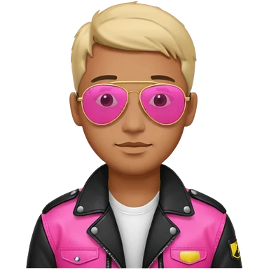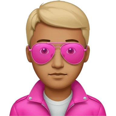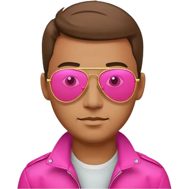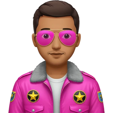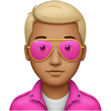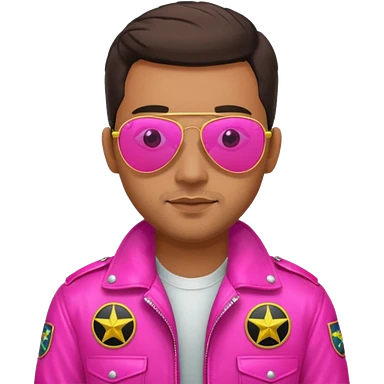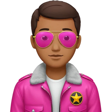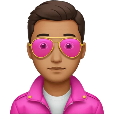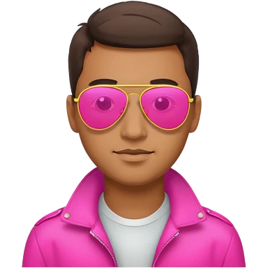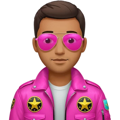 1980s man wearing reflective neon pink aviator sunglasses and a pilot jacket emoji