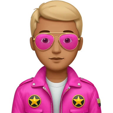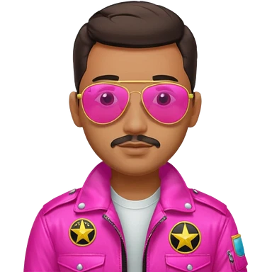 1980s cool man with stubble wearing reflective neon pink aviator sunglasses and a pilot topgun jacket emoji
