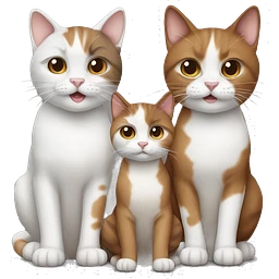 3 cats different colours including brown tabby and white, light patchy calico, and ginger and white emoji