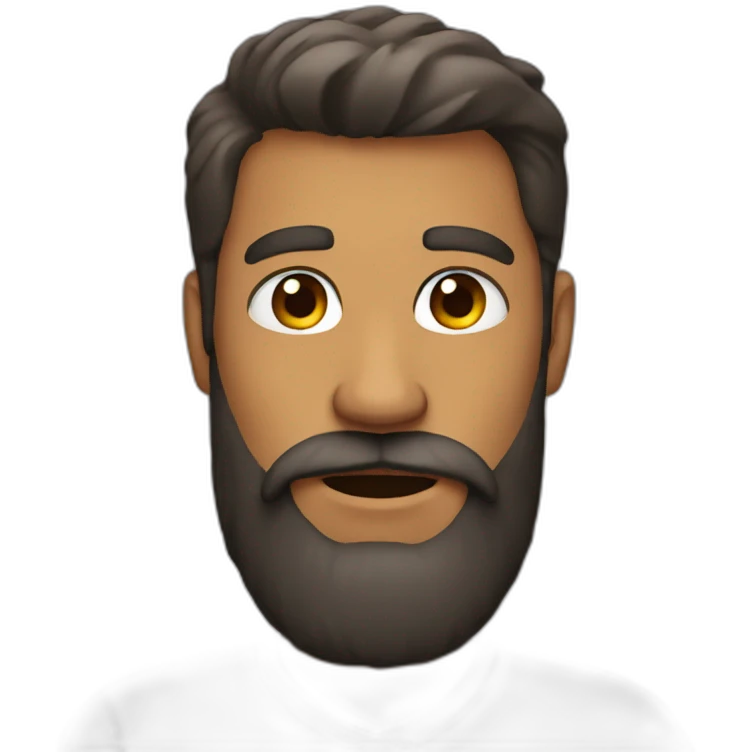 A man with a big beard and a long nose but a good nose, being bald, with brown eyes emoji