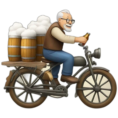 Old man riding on cotton with two bottle of beer in hands emoji