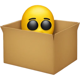 Pale skinned Man with black hair in a white cap and dark gray polo T-shirt with a box into his hands emoji