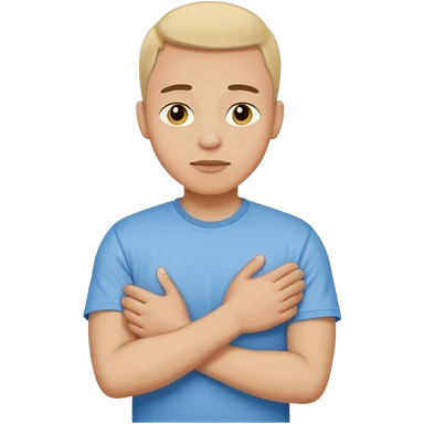 Man, cold and wearing a t-shirt, hugging himself emoji