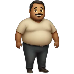 man with a large red tomato as his belly emoji