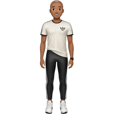 Man with small oval face and big forehead, aviator-style glasses, completely bald/shaved sides with very short curly dark hair only on top of head, neutral-friendly expression, light brown skin, wearing a black shirt emoji