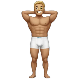 a 20 year old blond man with blue eyes, very muscular with abs, shirtless with sports shorts emoji