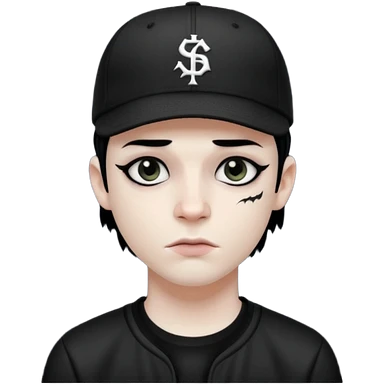 White man with sunburn with long black beard and backwards baseball ha with the letter A on it emoji