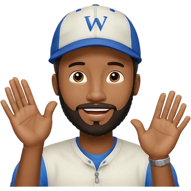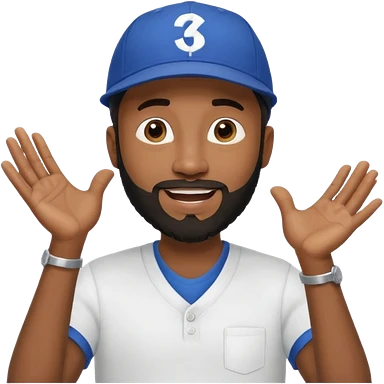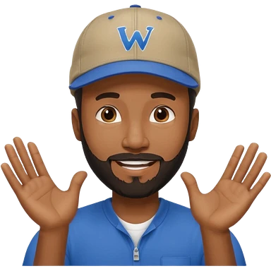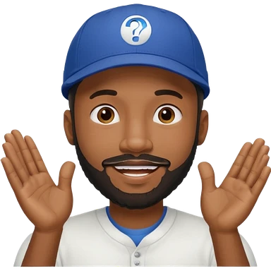 BLACK MAN WITH LOW CUT BEARD AND A BALL CAP SAYING WHO CARES?! MOTIONING HANDS emoji