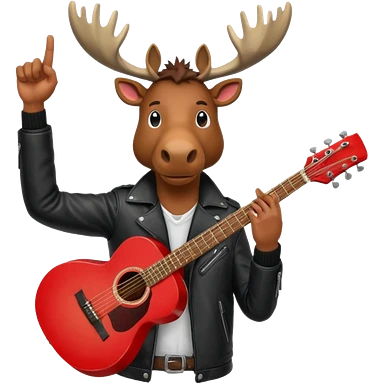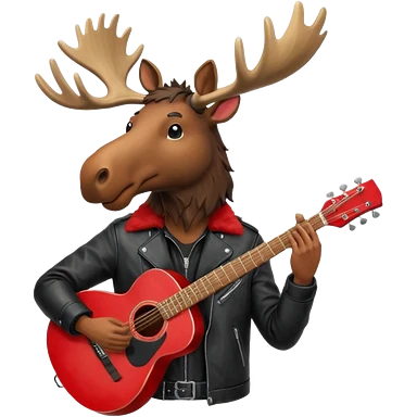 A young man with a fashionable hairstyle and beard, dressed in a white shirt and a black leather jacket, plays the guitar emoji