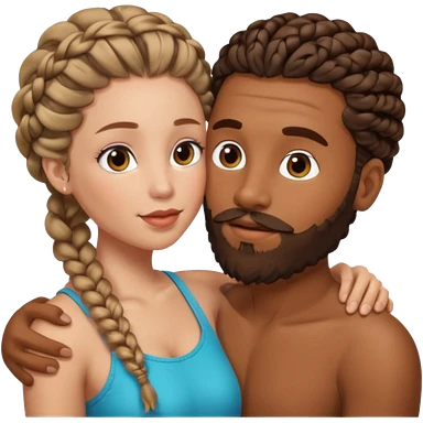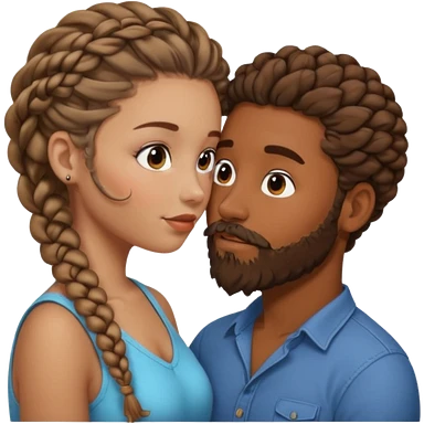 brown skin man with beard and braids making out with white woman with brown hair emoji