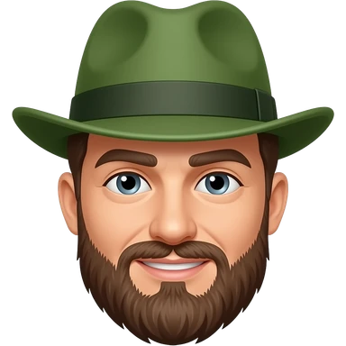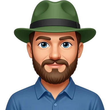 man with beared and wear green hat wear blue shirt half body close up emoji | AI Emoji Generator