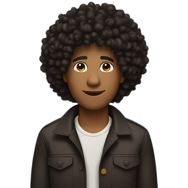 brown skin man with afro long black curly hair emoji