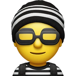 yellow man with blindfold with eyes out black beanie black and white striped shirt sack of money hanging over shoulder emoji