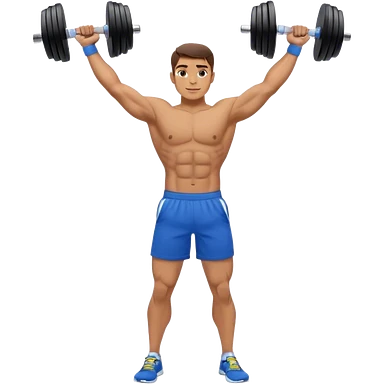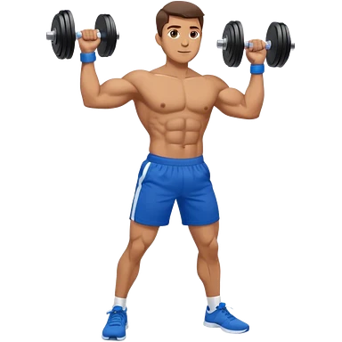 man with blue shorts doing side-lateral raise (T pose) with light dumbbells emoji | AI Emoji Generator