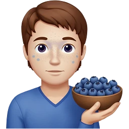 Man with brown hair and white skin with freckles, holding blueberries emoji