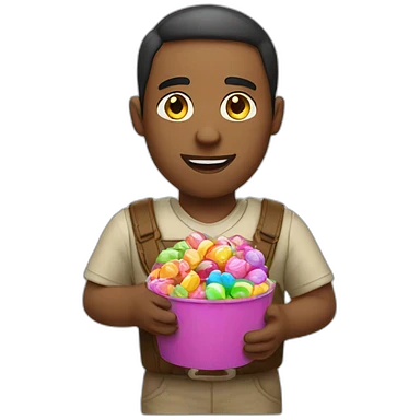 very cheerful colorful puffy curly haired man made out of cotton candy with braces and tattoos and just face emoji