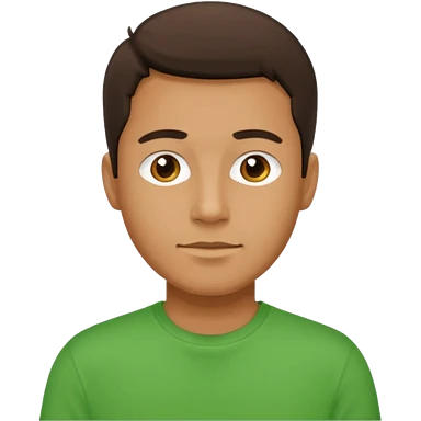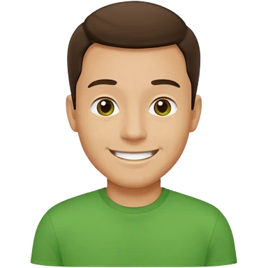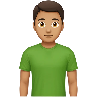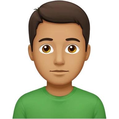 Man with black hair and glasses wearing red tshirt with green collar emoji
