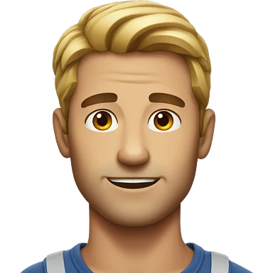 Man with blue eyes, blonde hair, and defined jawline wearing king crown emoji