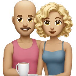 left a young woman with straight Brown hair in a ponytail, sportive figure, sunkissed skin, Green eyes an right a taller man who is standing Next to her, blonde straight hair in a ponytail, blue eyes, 3 days beard, sunkissed skin emoji