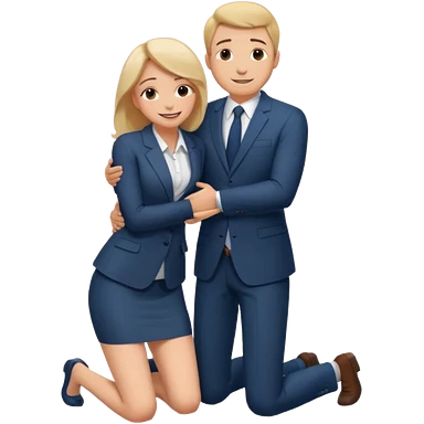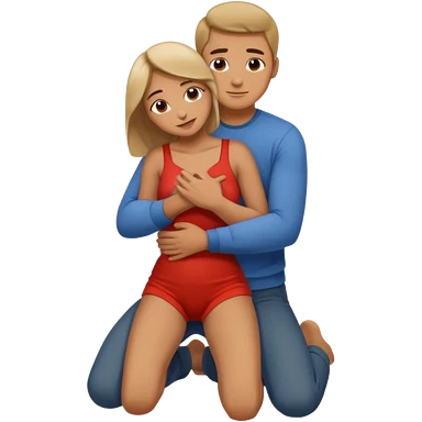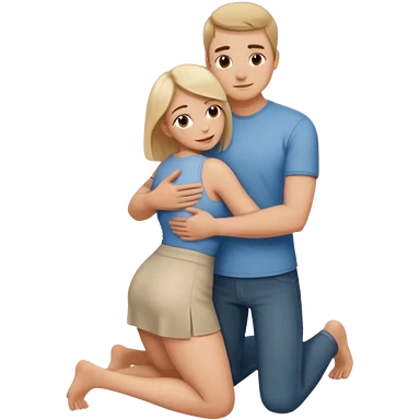 man with dark hair on knees, facing dark haired standing woman, hugging her waist emoji | AI Emoji Generator