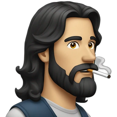man with long dark hair and beard smoking cigarettee emoji
