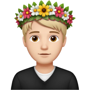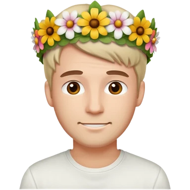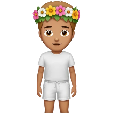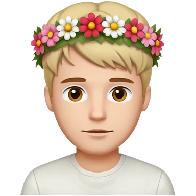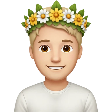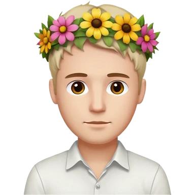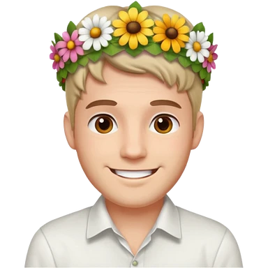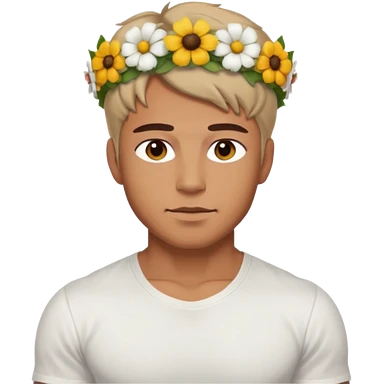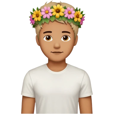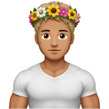 Man with flower crown and white shirt, half body emoji | AI Emoji Generator