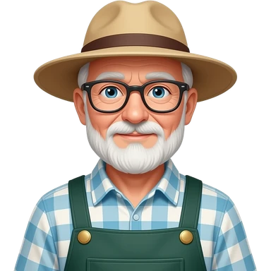happy gardener man short dark hair long beard with steve job glasses with hat emoji
