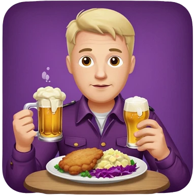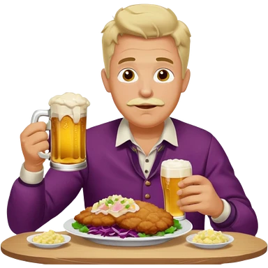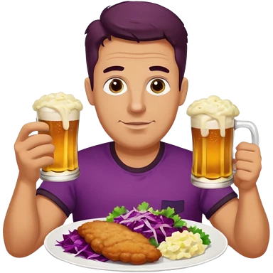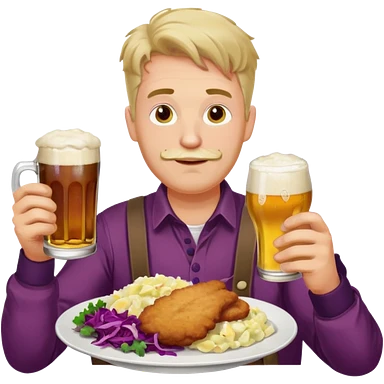 German man eating schnitzel, potato salad, red cabbage, sauerkraut, and beer emoji