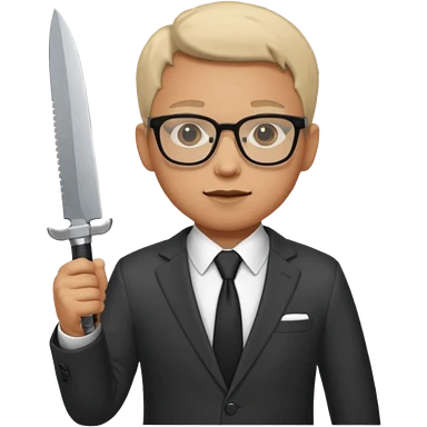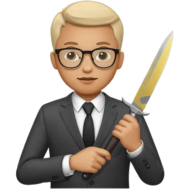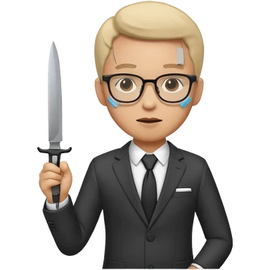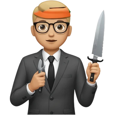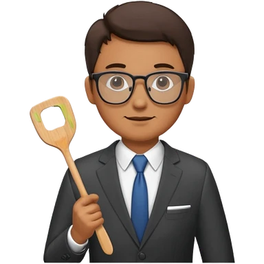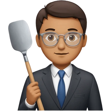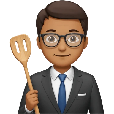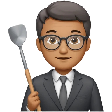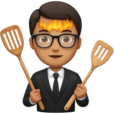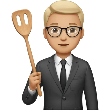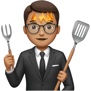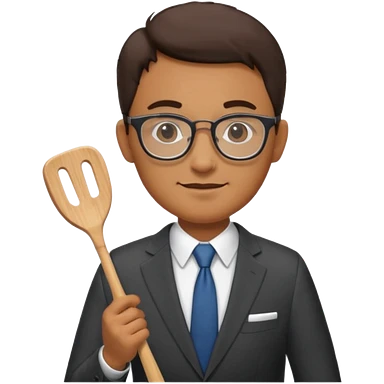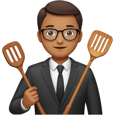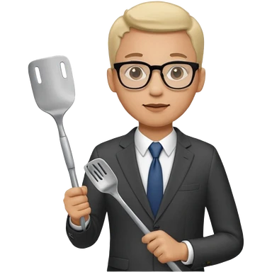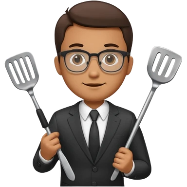 man with glasses wearing a suit and holding a grilling spatula emoji