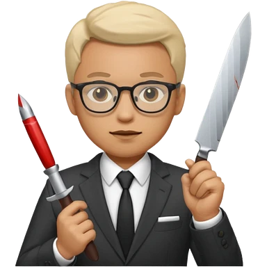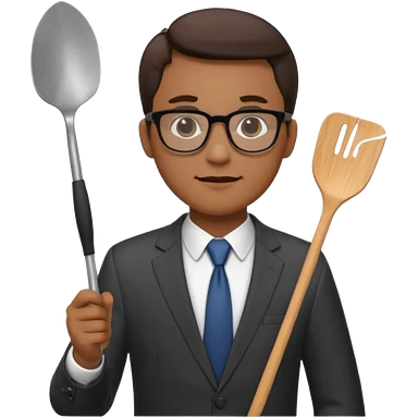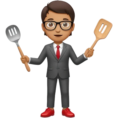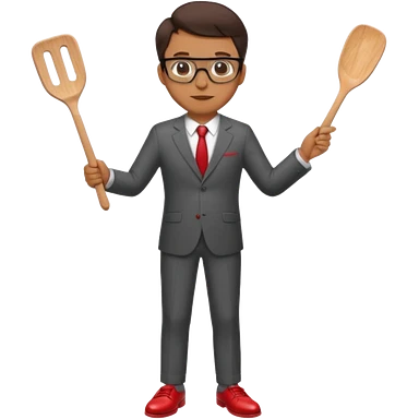 man with glasses wearing a suit and red shoes holding a spatula emoji