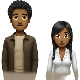 A couple of one man with dark short hair, a goatee and brown eyes and a Moroccan woman with brown hair and green eyes, they are both 20 years old emoji