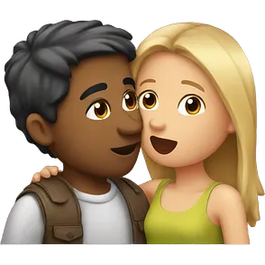 White curlye girl with long brown hair kisses black man with short haircut emoji