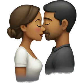 A man with wheat skin and curly black hair kisses a white girl with long black hair emoji