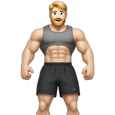 To knee Actively gesturing with hands Pale skinned Fit Man With the biceps and light brown hair in dark gray Sleeveless Mike, black oversize sports shorts and white Sneakers emoji