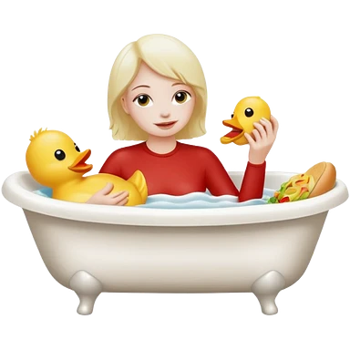 Girl with light brown hair reading a book in the bath with bubbles emoji