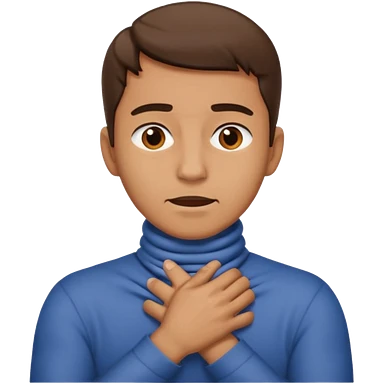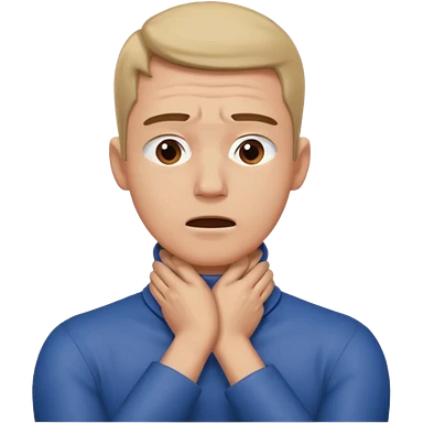 Man with hands gripped around neck crossed like he is choking while smiling emoji