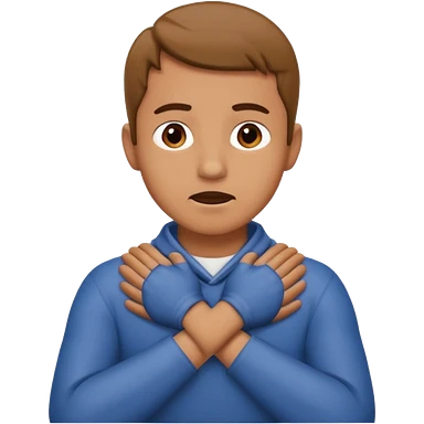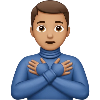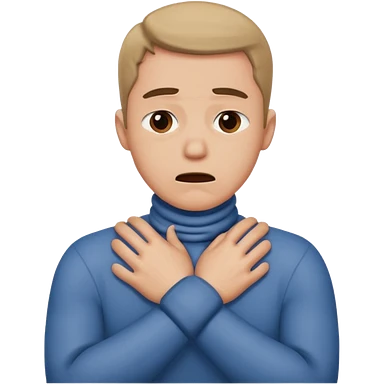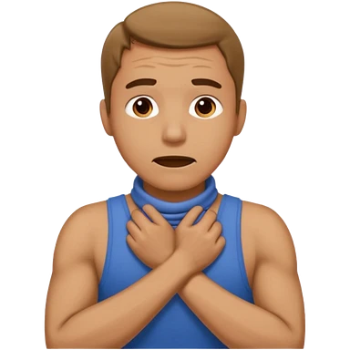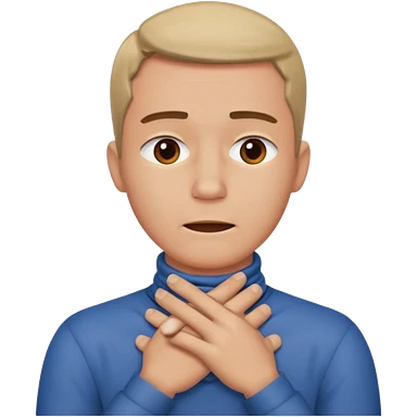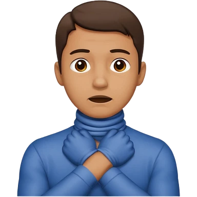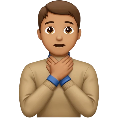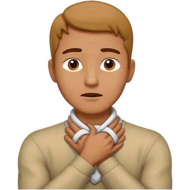 Man with hands gripped around NECK crossed like he is choking while smiling emoji