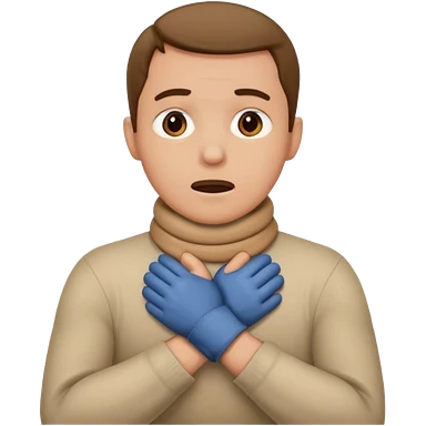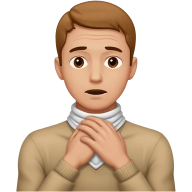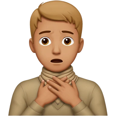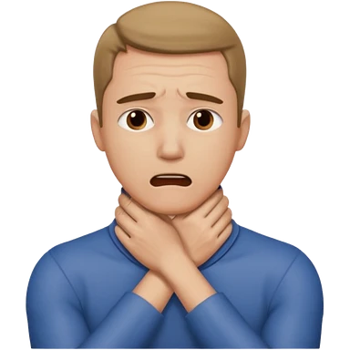 Man with hands gripped around neck crossed like he is choking while smiling emoji | AI Emoji Generator