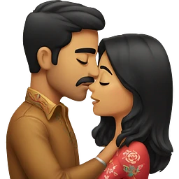 Man with dark brown hair hugging girlfriend with brown hair emoji