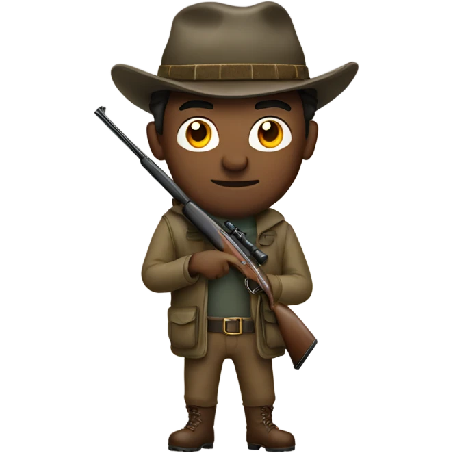 emoji for Hunting Tourism: a hunting rifle, hunting boots and a compass on a forest background, with a silhouette of wildlife in the distance. The icon should capture the adventure and connection with nature in hunting tourism. Transparent background. emoji