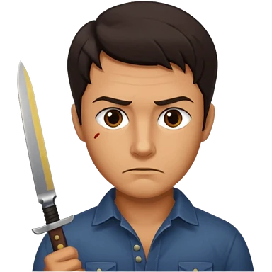 Bald man with a beard with bulging eyes holding a knife to his throat emoji