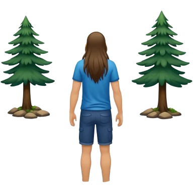 nude from behind character, bearded man with long brown hair playing acoustic guitar by pine trees emoji