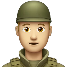 A white man with stubble in a soldier's uniform and a sad face emoji