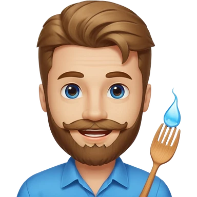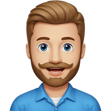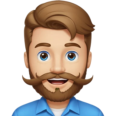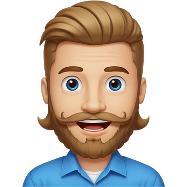 Man with brown hair, blue eyes, curly mullet and a mustache emoji