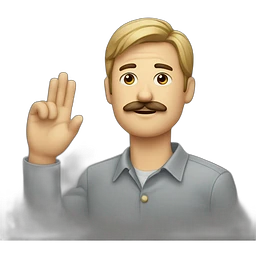 Man with rectangular brown Mustache With slicked brown hair Raise your hand emoji