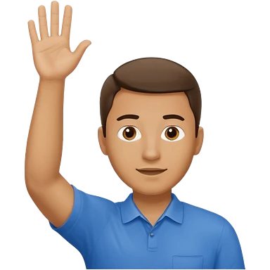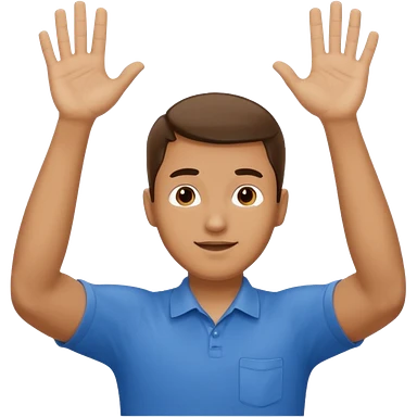 A man with both hands raised above his head. His expression is surprised but confident. Yellow emoji man. emoji